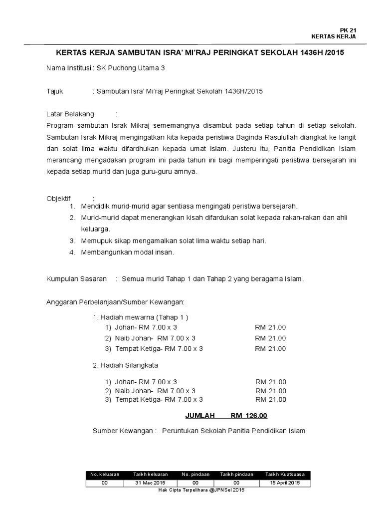 Menyedari hakikat ini maka program ini dilaksanakan agar. Contoh Kertas Kerja Program Sambutan Isra Mikraj.