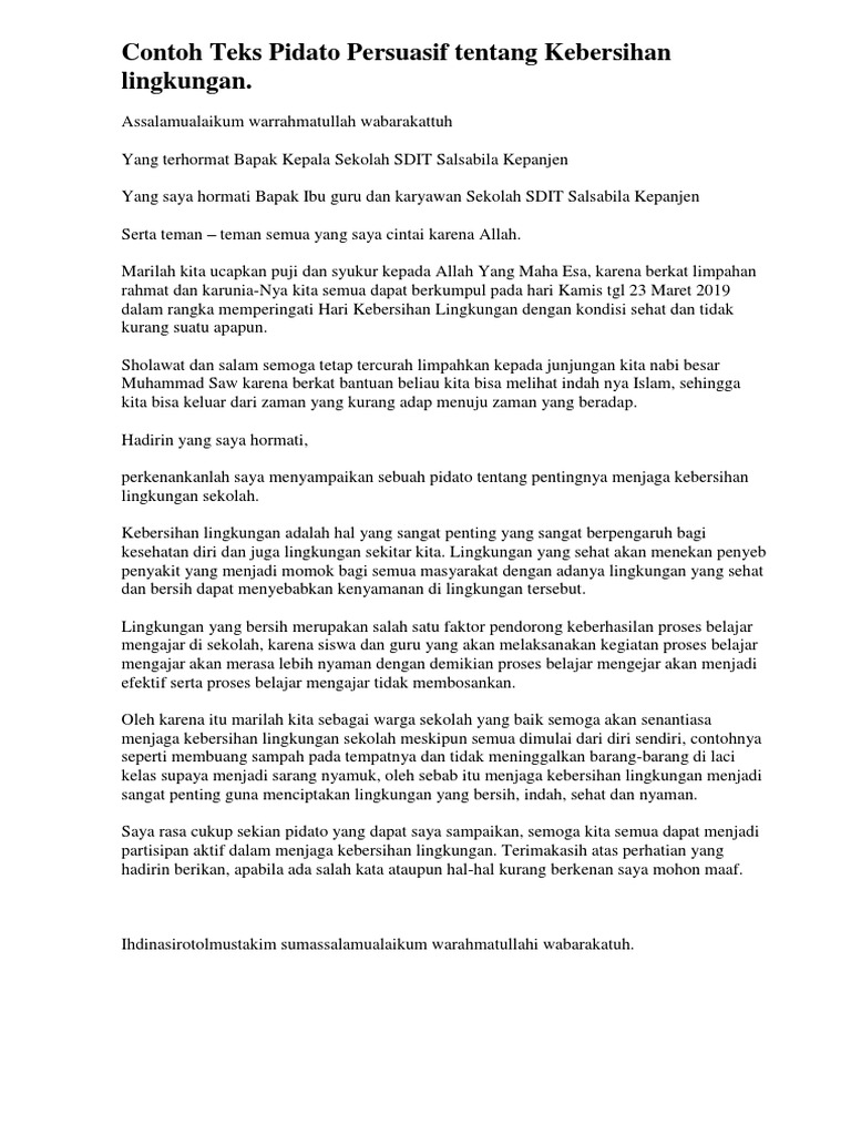 Teks Pidato Persuasif Tema Bersih Sovia Gunhal Kbb Pdf